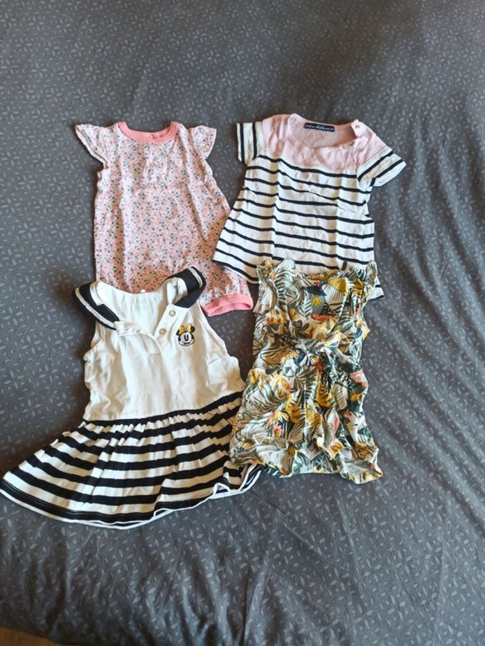 Lot 2 robes + 2 combishorts été fille. 6 mois. Gémo, orchestra, weekend à la mer, tex Possibilité de délotter. Me contacter 😜