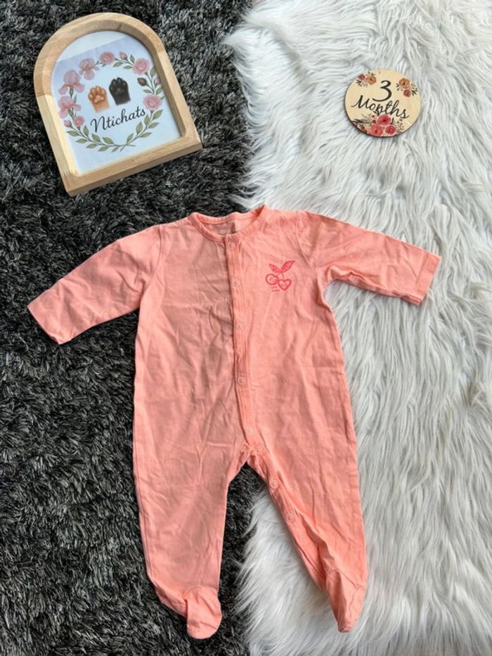 Pyjama mixte de la marque In Extenso, taille 3 mois, en coton fin idéal pour la mi-saison ou les nuits plus chaudes. Coloris orange fluo, très tendance, avec un petit motif cerises et feuille sur la poitrine. Fermeture par pressions à l’avant et à l’entrejambe pour un habillage rapide et facile.