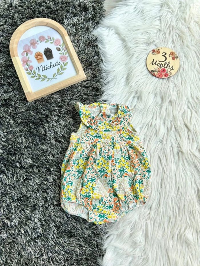 Barboteuse sans manches à col imprimée en coton, certifié GOTS