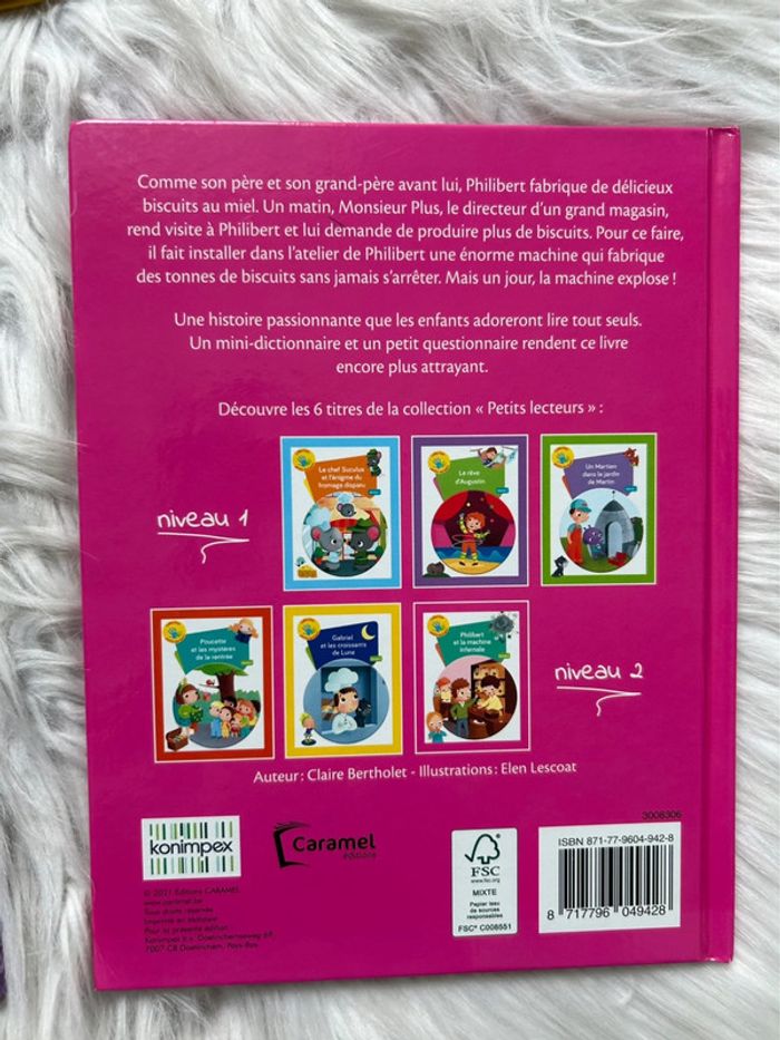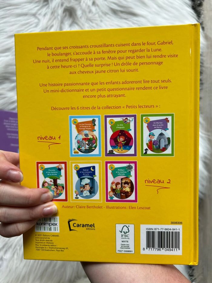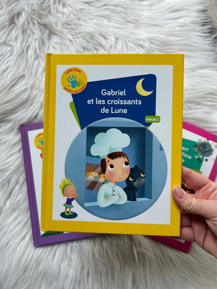 lot de trois livres de la "Collection Petits Lecteurs", parfaits pour accompagner les enfants dans leurs premières aventures de lecture. Ces livres sont conçus pour rendre l'apprentissage de la lecture amusant et engageant. * "Gabriel et les croissants de Lune" (Couverture Jaune - Niveau 2) : Une histoire gourmande et imaginative pour les lecteurs un peu plus aguerris. * "Le rêve d'Augustin" (Couverture Violette - Niveau 1) : Idéal pour les tout premiers lecteurs, avec une histoire douce et inspirante. * "Philibert et la machine infernale" (Couverture Rose - Niveau 2) : Une aventure pleine de suspense et de découvertes pour stimuler l'imagination. Ces livres sont en très bon état général, comme neuf (voir photos pour plus de détails). Ils sont parfaits pour les enfants qui commencent à lire ou qui consolident leurs acquis. N'hésitez pas si vous avez des questions ! ————🍓🦄🌸🌺🪷🍋🫐🍓🍭———————— Classé par #, n'hésitez pas à visiter et composer votre lot. ꧁ #ntichatslivres ꧂ Le tri du dressing est effectué de manière régulière. N'hésitez pas à vous abonner! Bon shopping 🛍️ ˙˚ʚ(´◡`)ɞ˚˙ ———————————————————————— #livreenfant #premiereslectures #collectionpetitslecteurs #lecturefacile #apprentissagelecture