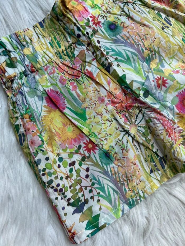 Magnifique short en taille 5 ans, confectionné par la créatrice A&B dans le célèbre tissu Liberty Ciara. Son imprimé floral multicolore aux teintes vives (rose, jaune, vert, turquoise…) apporte une touche bohème et joyeuse parfaite pour le printemps et l’été.
