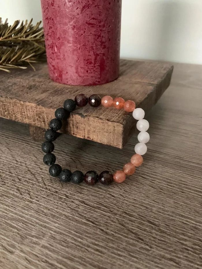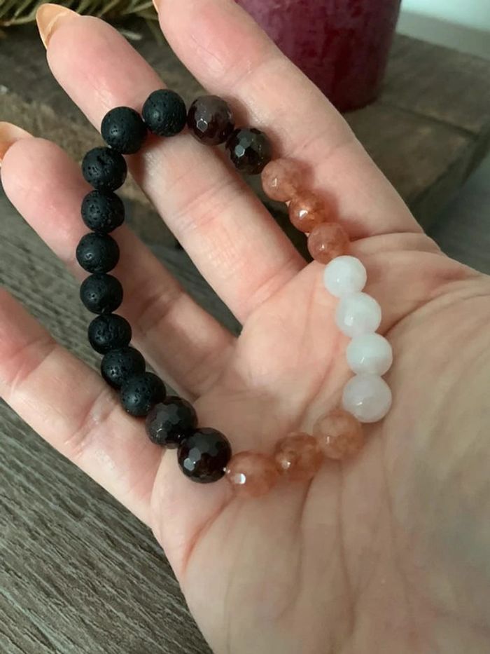 VENTE Bracelet en pierre de lave grenat et quartz - photo numéro 2