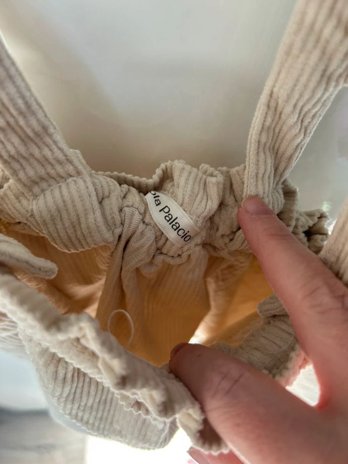 Offrez à votre petite fille un look charmant et raffiné avec cette ravissante jupe salopette signée Lola Palacios, une marque réputée pour son style intemporel et élégant. Conçue en velours côtelé écru tout doux, cette pièce allie confort, chaleur et chic naturel.