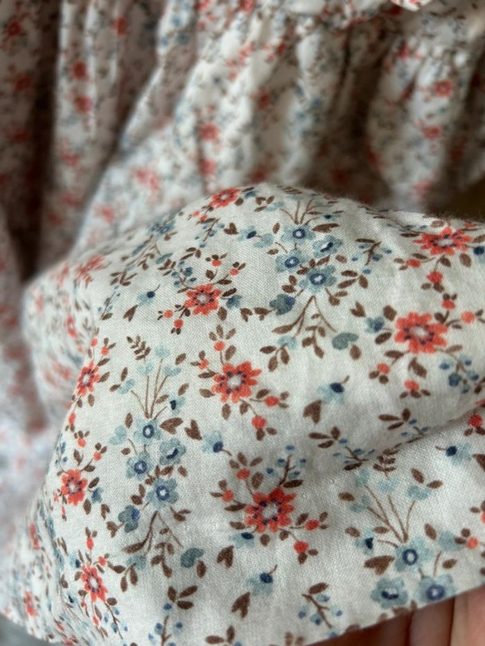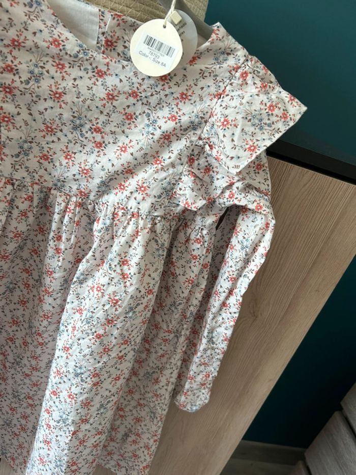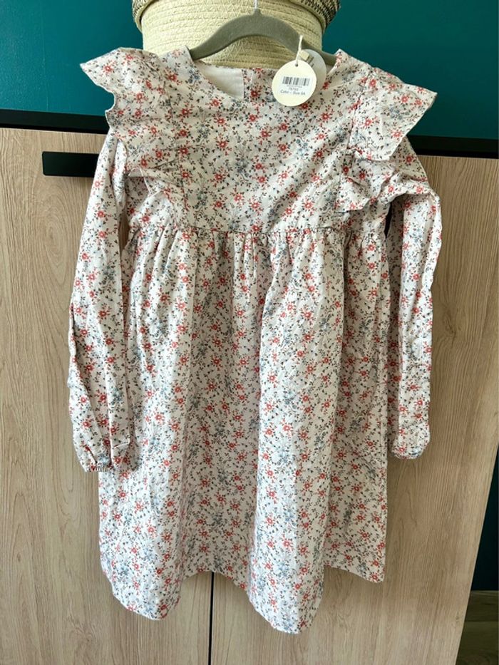 Robe fleurie bleue et orange, idéal pour la mi-saison.