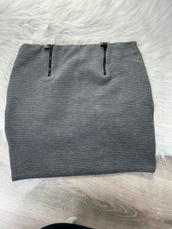 Jupe courte grise - Bershka - taille L - photo numéro 1