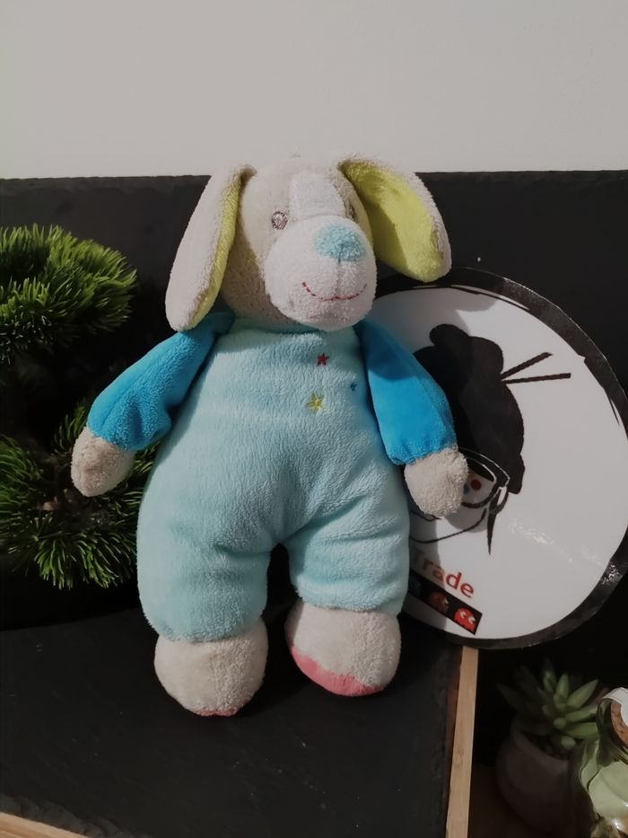 doudou peluche chien sucre d'orge bleu gris étoiles blanc vert rouge DD003201 - photo numéro 1