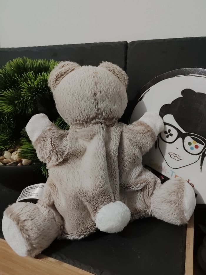 doudou marionnette tex baby blanc marron beige rond sourire ponpon  DD003202 - photo numéro 2
