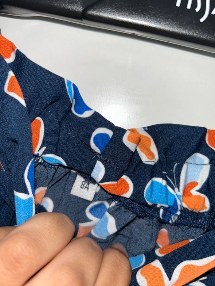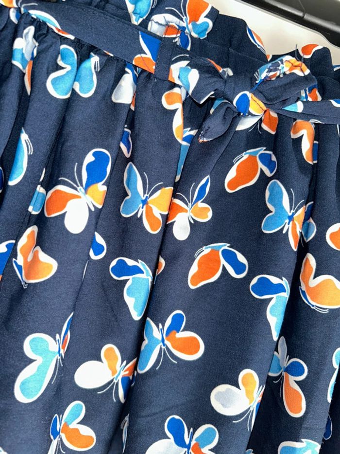 Jupe fluide bleu marine à motif papillon avec une petite ceinture Très bon etat (acheter avec un défaut de couture mais ne gêne pas) Taille 8 ans #mylene_ameliebabygirl8ans