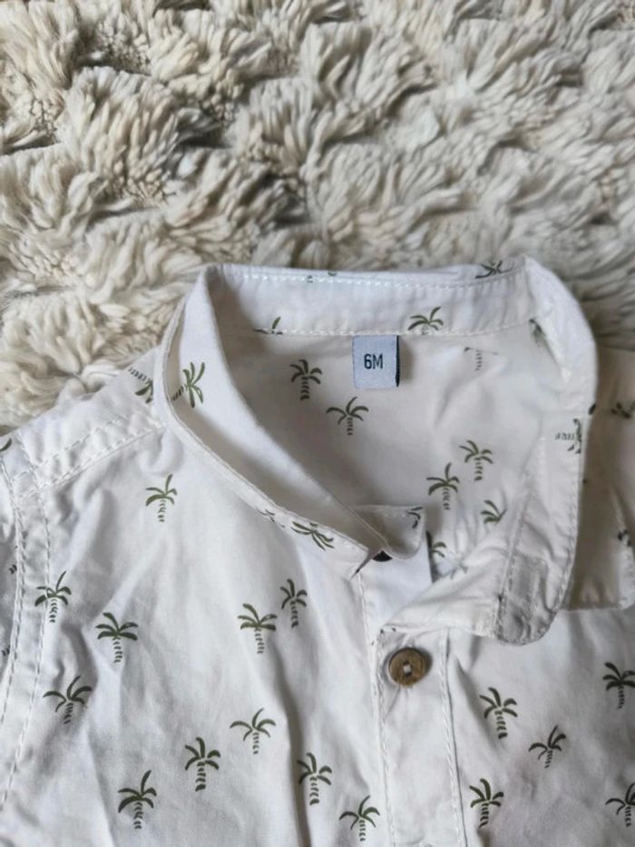 Chemise manche courte Blanche avec des palmiers vert Taille 6 mois Neuve sans étiquette. #coralieandsanem6mois
