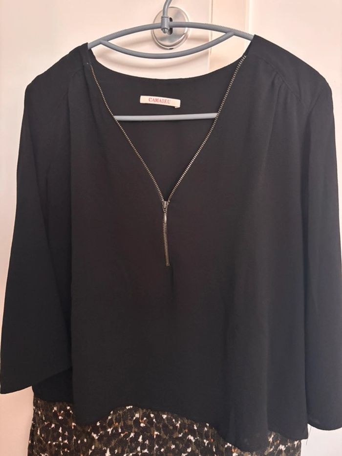 Robe kaki et noire effet chemisier et jupe camaieu taille 40 - photo numéro 2