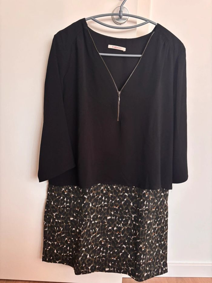 Robe kaki et noire effet chemisier et jupe camaieu taille 40 - photo numéro 1