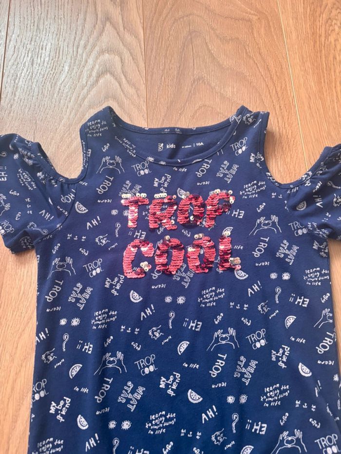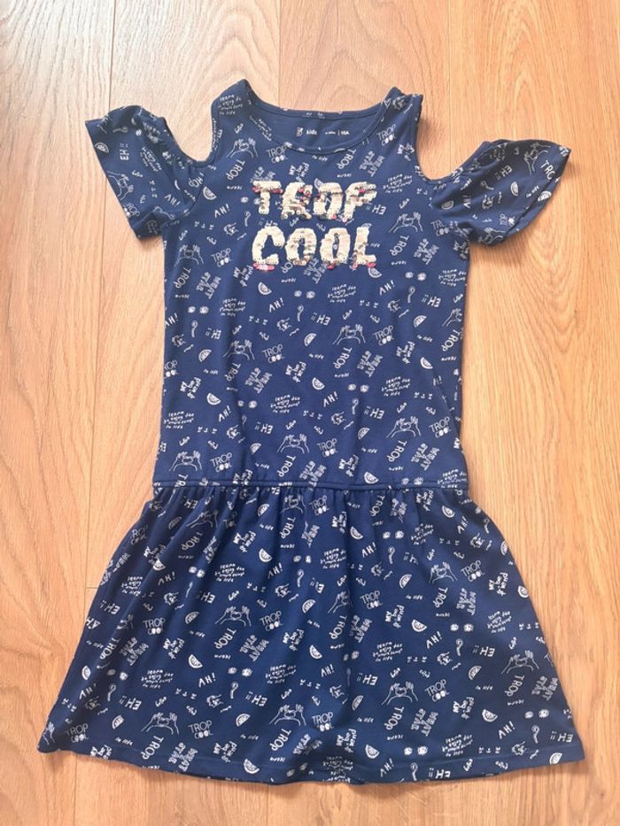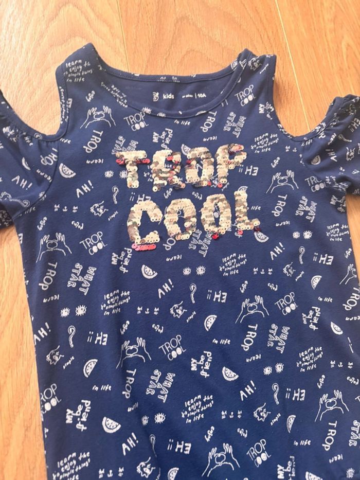 Robe épaules nues bleu à sequins « trop cool » Gémo 10 ans