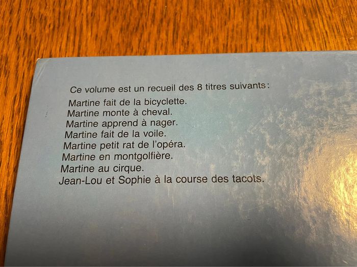 Recueil de 8 livres Martine Martine fait de la bicyclette Martine monte à cheval Martine apprend à nager Martine fait de la voile Martine petit rat de l’opéra Martine en montgolfière Martine au cirque Jean Lou et Sophie à la courses des tacots
