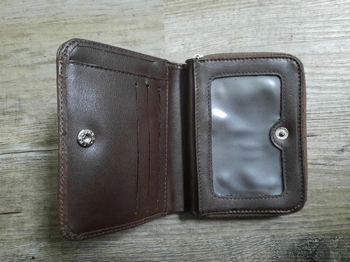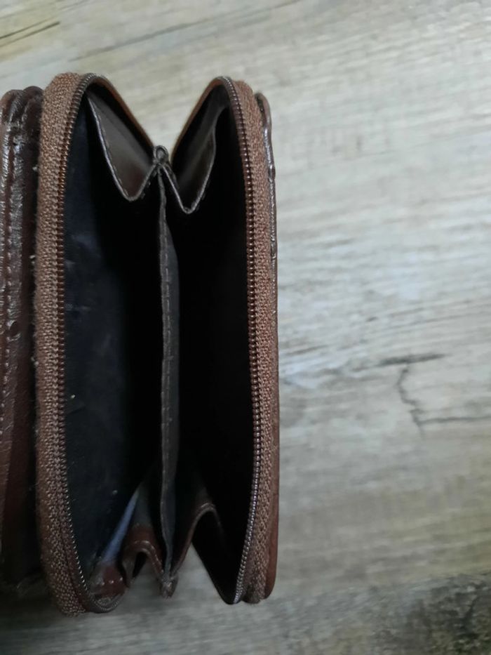 Porte-monnaie/ feuilles marron. Peut-être aussi offert en cadeau si vous me faites un lot et si vous le précisez. (Un peu abîmé à l'intérieur voir dernière photo).
