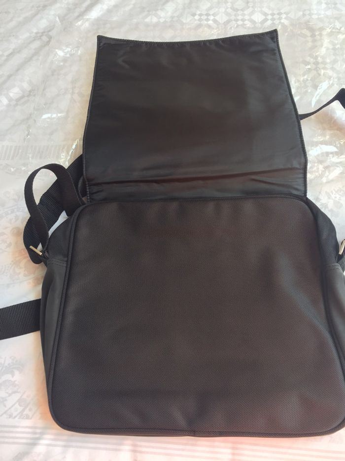 Sac besace à bandoulière réglable Azzaro Neuf jamais servi encore dans sa pochette plastique Une grande poche intérieure avec une petite poche à fermeture éclair Largeur 35 cm Hauteur 28 cm Un rabat sur le devant Très pratique pour transporter ordinateur portable ou tablette