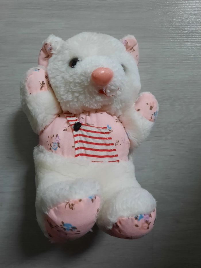 Peluche Nounours Blanc & Rose - Vintage. Juste Bretelle a recoudre si vous voulez. J'ai le même en Blanc & Jaune.