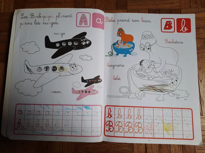 Livre: Les chiffres et les lettres avec Barbapapa. Les livres du dragon d'or. Juste une page double est faite (voir photos 📷).