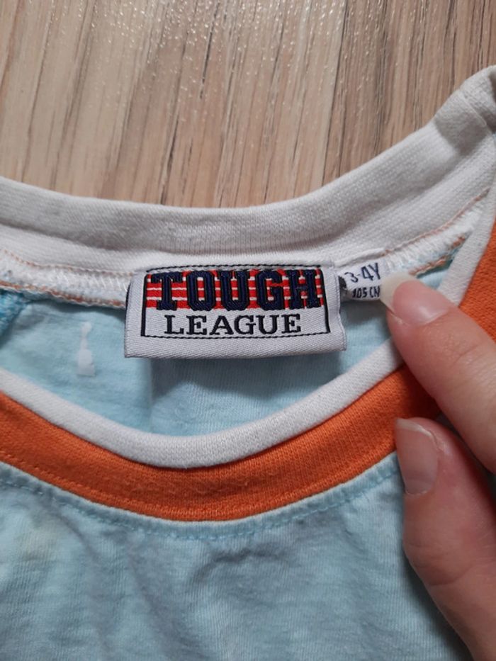 T-Shirt Bleu clair, orange & blanc. Taille 3-4 ans _ 105 cms. 100% Coton.