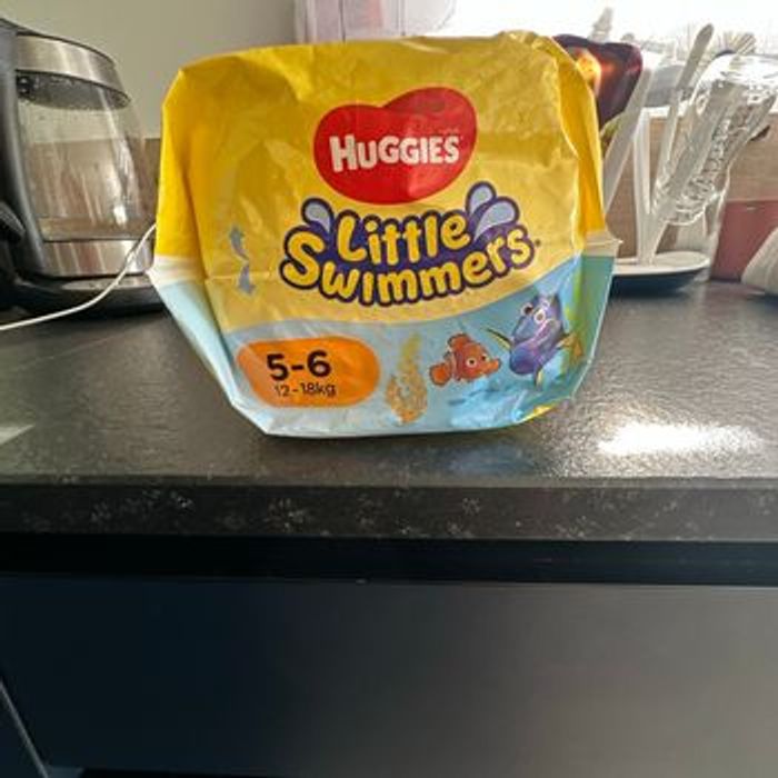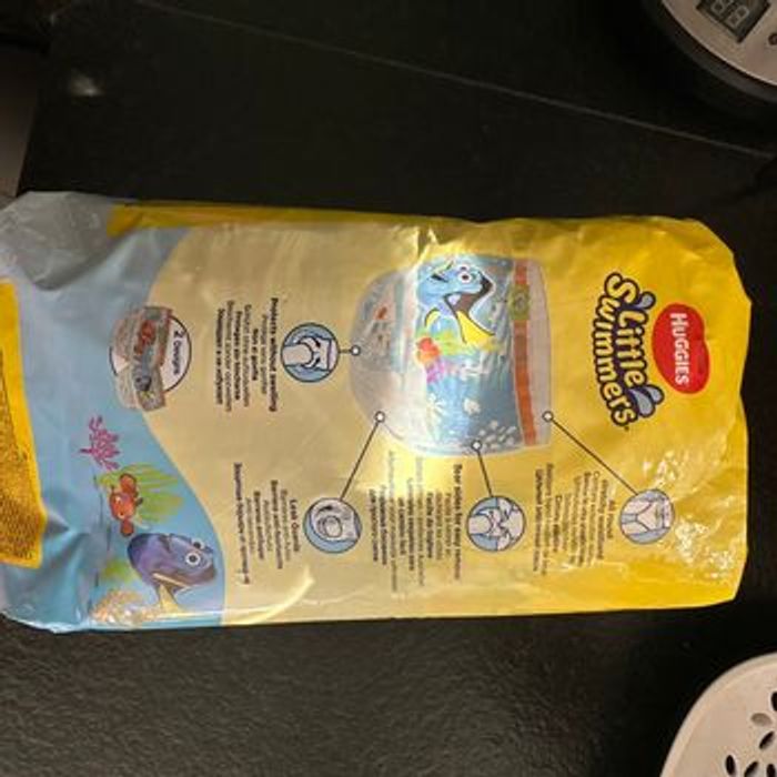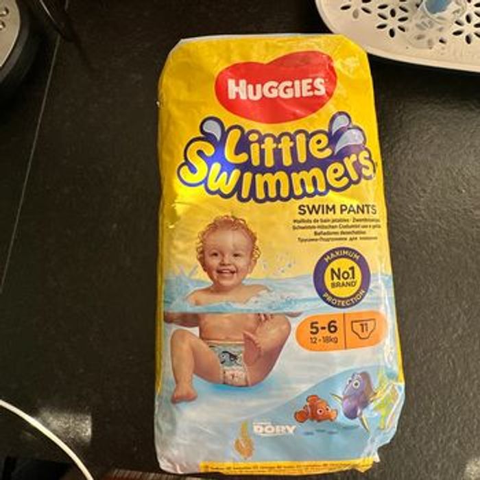 Paquet neuf de 11 couches de bain. Taille 5-6 (12 à 18 kg). Décoration sur le thème de Nemo et Dory.