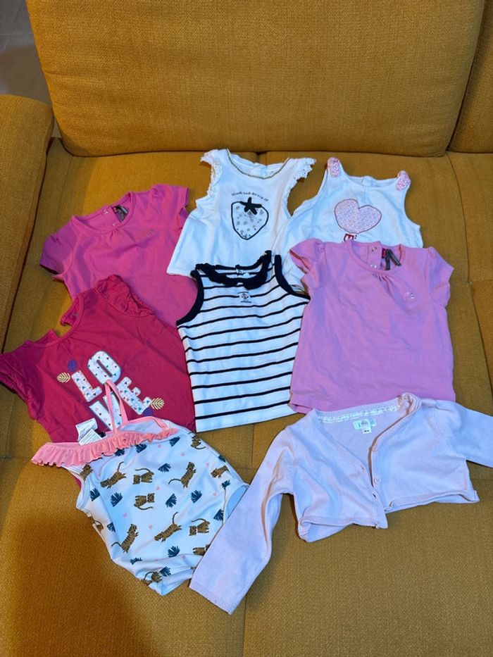 Lot 18 mois comprenant : - 6 tee shirts en très bon etat - un maillot de bain en très bon état - un boléro en très bon état