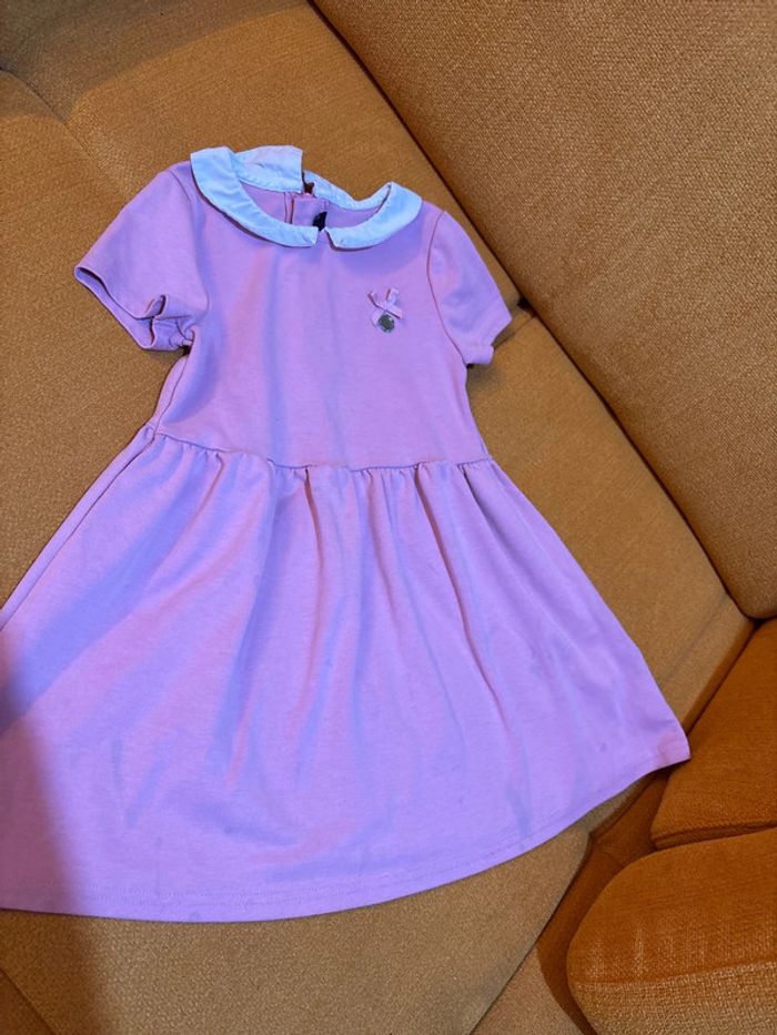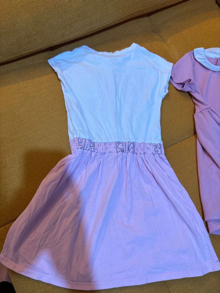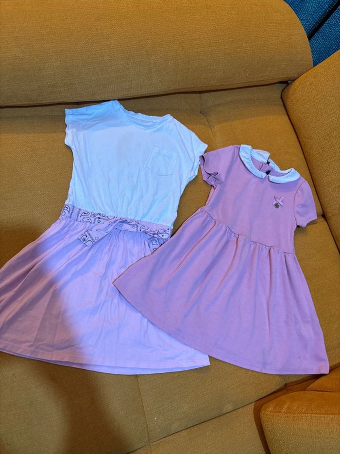 Lot de 2 robes 6 ans - marque OVS blanc et rose tachée sur le devant - marque sergent major rose tachée sur le bas