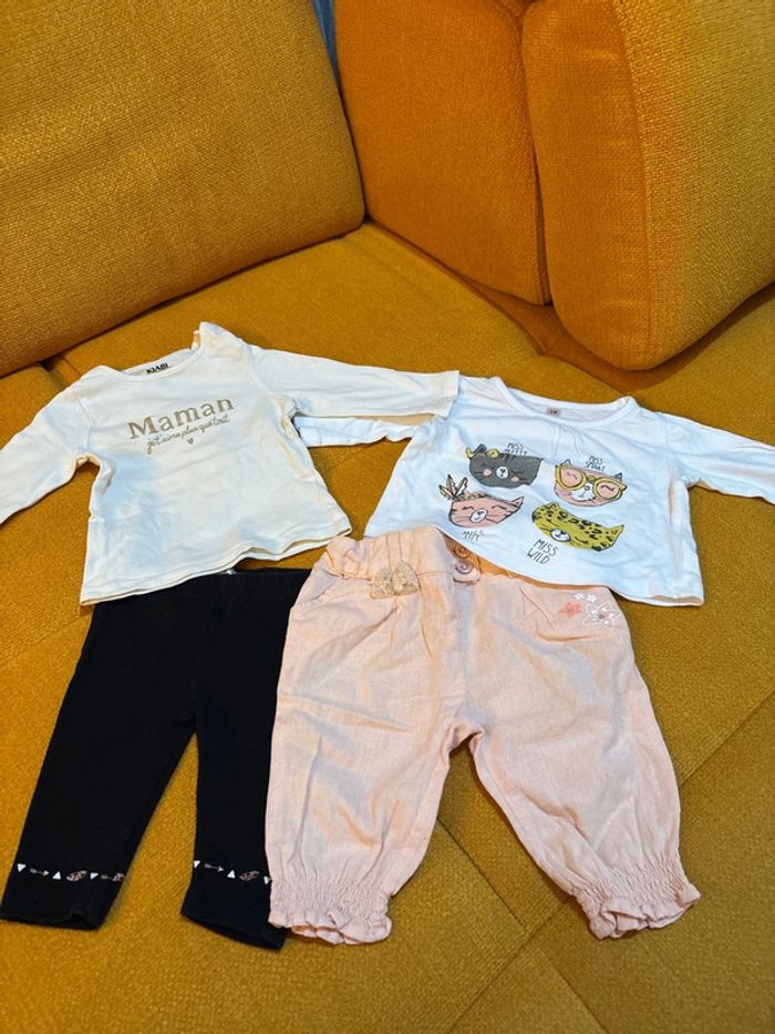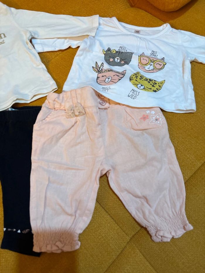 Lot de 2 ensembles en très bon état un legging, un pantalon léger, et deux tee shirts manches longues 3 mois