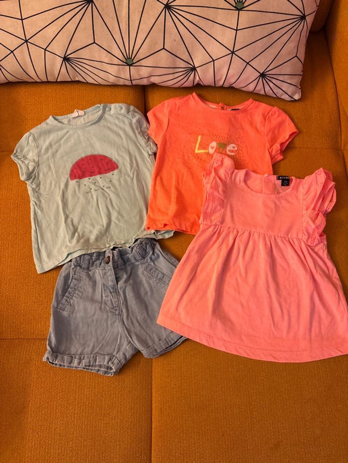 Lot 12 mois : un short en jean kiabi très bon état Trois tee shirts kiabi très bon état
