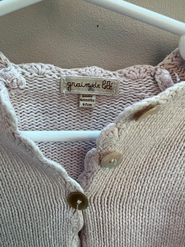 🌺 Marque : grain de blé 🪻Taille : 6 mois 🌼 État : très bon 🪷 Précisions : gilet rose façon laine avec boutons nacrés 🌸 La réduction sur les lots est activée ! 🌸