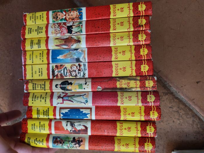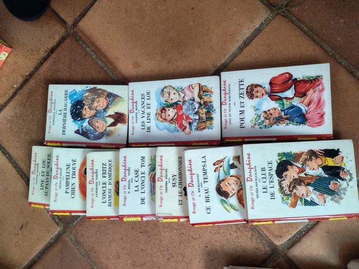 Vends lot de 11 livres de la collection « bibliothèque rouge et or, série Dauphine ». Possibilité à l’unité, me demander. Le lot pèse 2503g. Les titres sont: - l’oncle Fritz revient d’Amérique (1966): excellent état - pampelune chien trouvé (1966): excellent état - line et lou au pays du soleil (1966): excellent état - susy et le charbonnier (1966): couverture marquée, stylo verso couverture, pages tachées, mais bon état - la case de l’oncle Tom (1962): parfait état - poum et zette (1962): petite marque sur tranche, sinon excellent état - les vacances de Line et lou (1965): légères marques sur tranche, sinon excellent état - la dernière bagarre (1967): légères marques sur tranche, sinon excellent état - le club de l’espace (1959): traces de scotch au dos des couvertures, sinon excellent état - ce beau temps-là (1959): traces de scotch au dos de la couverture sinon très bon état - les deux nigauds (1966): couverture très marquée, intérieur très frais Idéal pour les enfants, collectionneurs, amateurs de la Bibliothèque .
