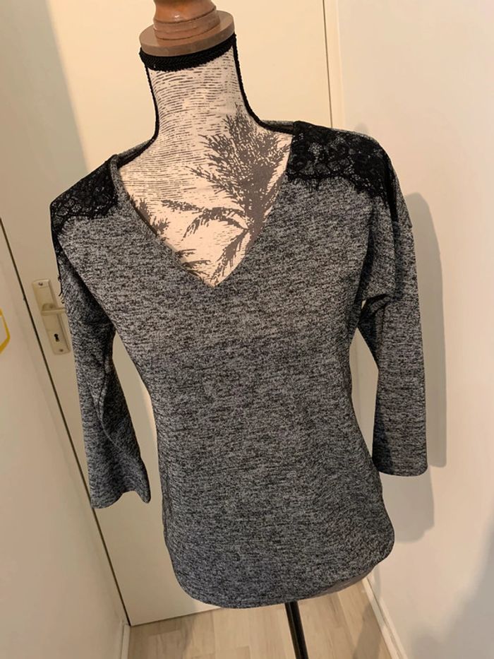 Haut gris chiné avec dentelle sur les épaules uniquement sur le devant Porté fois mais super état