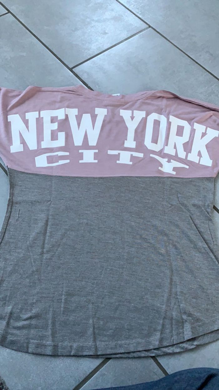 tee shirt violet clair et gris avec écritures NY (acheté à NY)