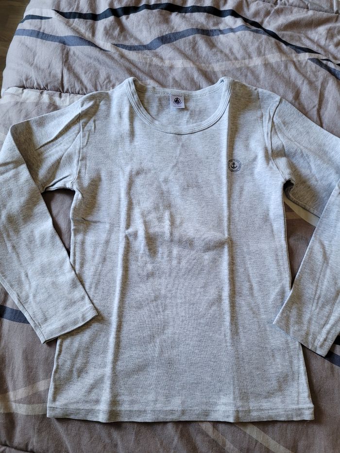 maillot de corps petit bateau 12ans manches longues gris en bon état (3e)