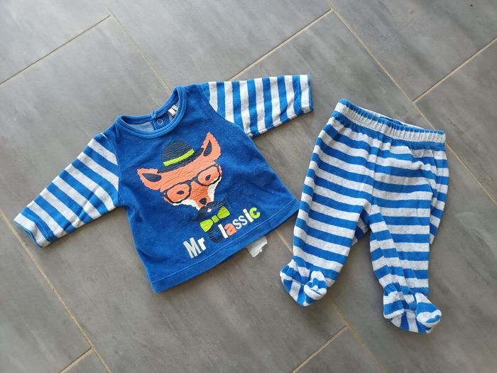 Bonjour je vend un pyjama 2 pièces couleur bleu et gris taille 3 mois