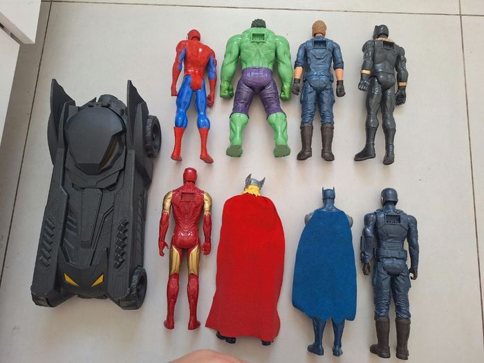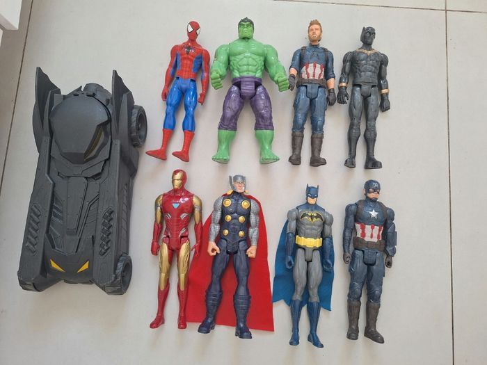Lot 8 grandes figurines marvel avenger + batmobil voiture : spiderman, batman, hulk, thor, Iron man, captain america - photo numéro 1