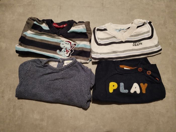 ! Tout sera bien-sûr re-lavé et repassé avant envoi ! Tout n'apparaît pas à cause de la limite de photos mais il y a bien le bon nombre de produits. Je peux envoyer les autres photos par message. Lot de vêtements 6 mois : 9 pantalons dont 2 légers 6 Salopettes dont [1 neuve de marque patpat et une légère et courte] 3 t-shirts manches courtes dont 1 neuf 4 gilets dont 3 à fermeture éclair 4 pulls très légers manches longues 2 chemises manches longues 5 t-shirts à manches longues fins 9 pyjamas velours 2 pulls épais 1 pull fausse fourrure beige dessin totoro [1 combishort neuf] 1 body à manches courtes 5 bodys à manches longues 1 short Total de 53 vêtements. Marques : Disney, Sergent major, Creeks, Tape À l'oeil, Obaïbi, Tissaia, In extenso, mes petits cailloux, lulu castagnettes, Zara etc...