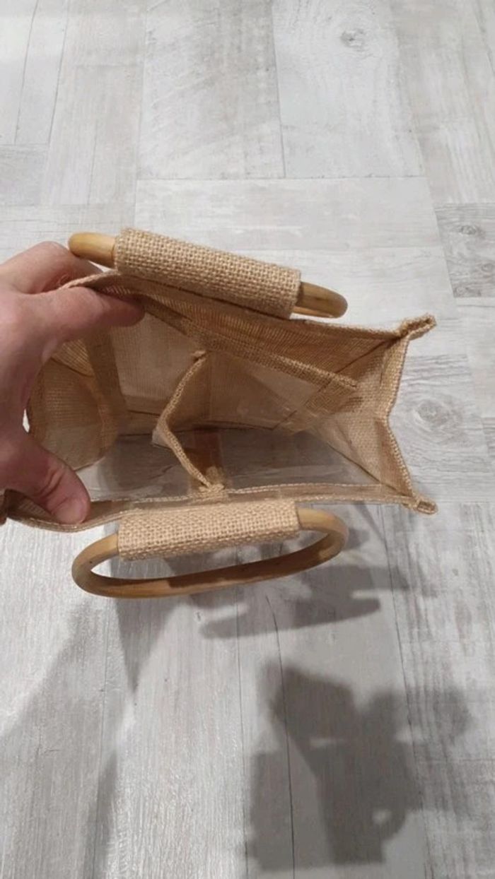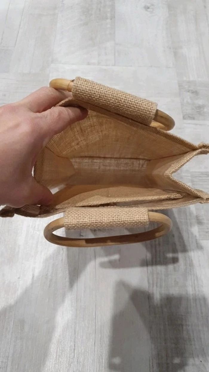 Sac en juste avec poignée en bois 34 cm * 20,5 cm * 9 cm - photo numéro 3