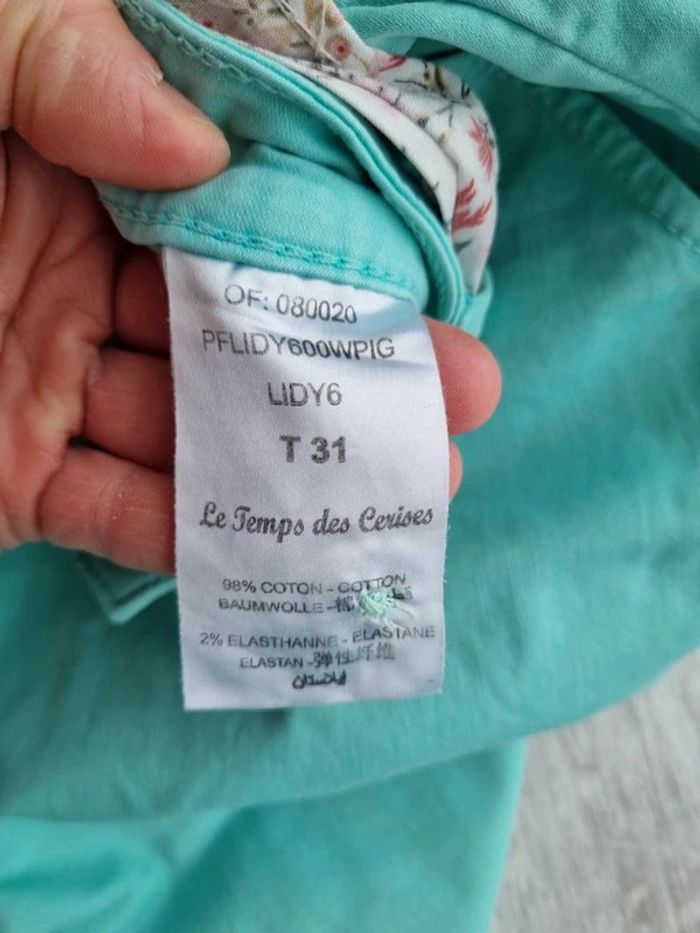 Chino Lidy couleur vert d'eau Taille 31 (Taille 40 en France) Très bon état Marque Le Temps des Cerises Acheté 79,90€