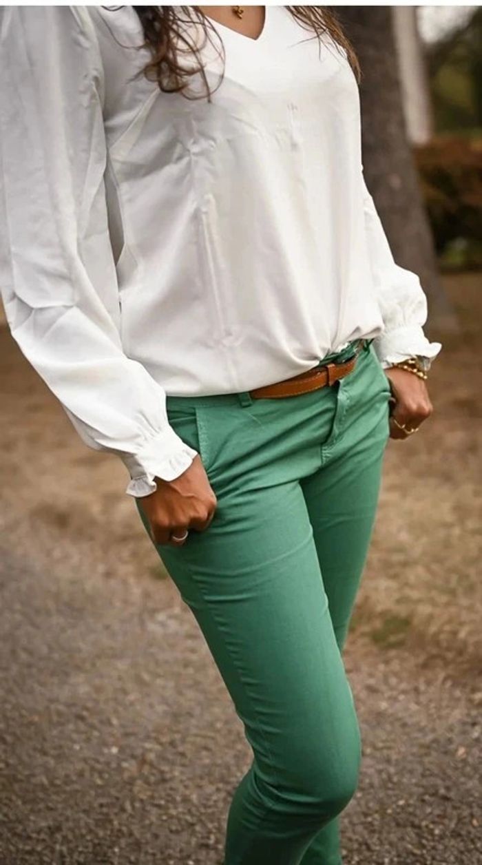 Pantalon chino vert foncé Taille M Neuf avec étiquette Pantalon Chino Vert foncé taille standard en coton avec poche et ceinture. Le Chino n'est pas un Skinny, ce sont des pantalons plus décontractés et moins près du corps, qui sont très élégants et donnent une touche classe quand on les associes avec un blazer et / ou des escarpins. Ils s'adaptent à toutes les morphologies et se portent retroussés. Composition: 97% Coton 3% Élasthanne