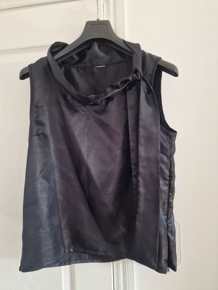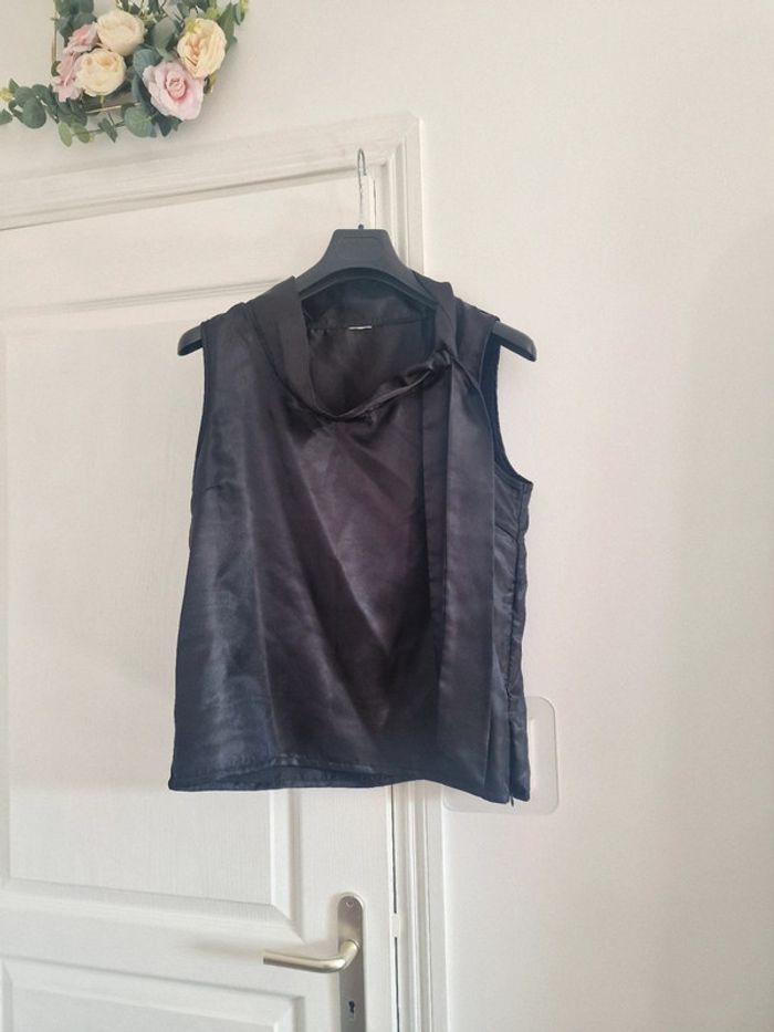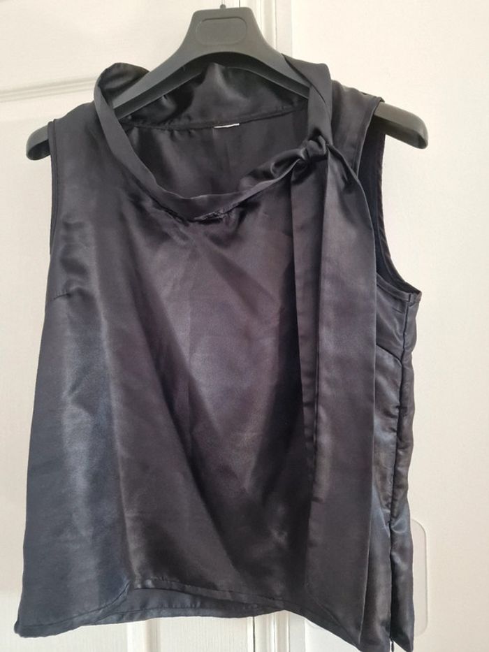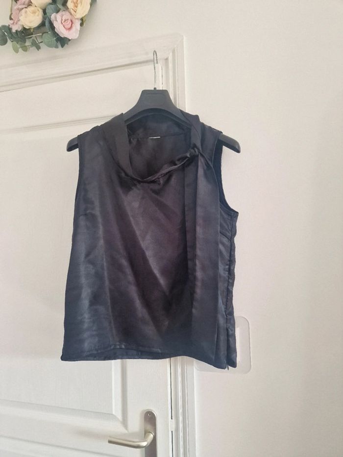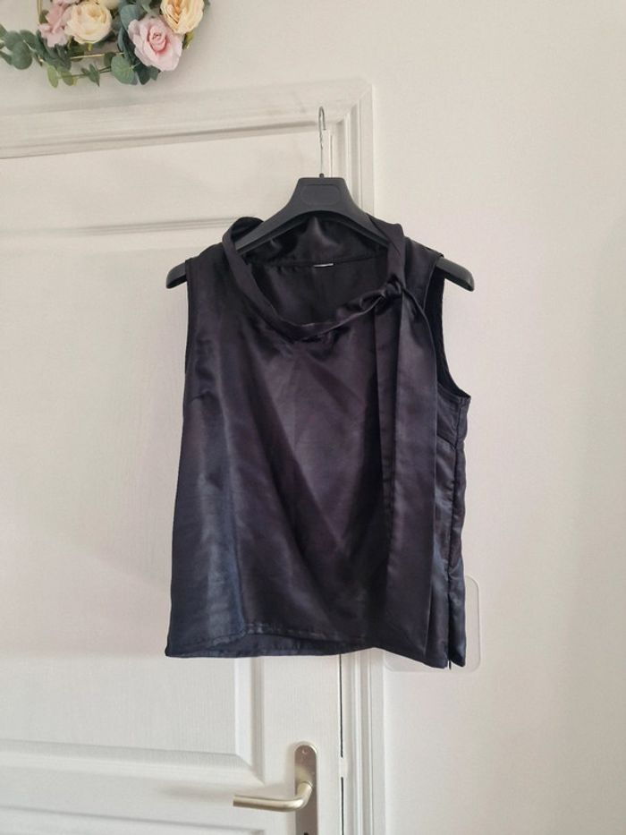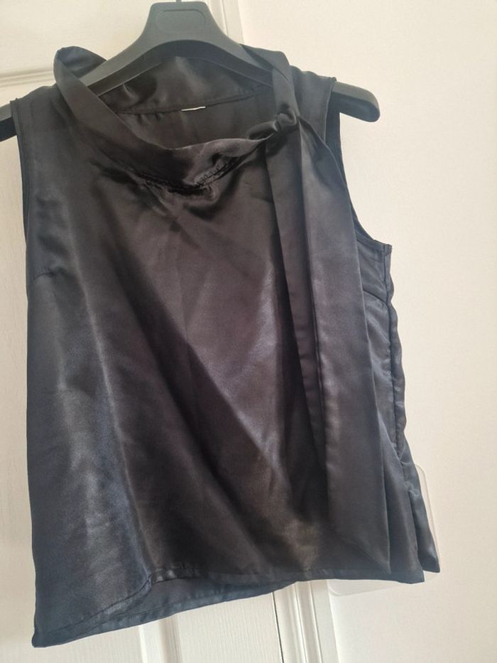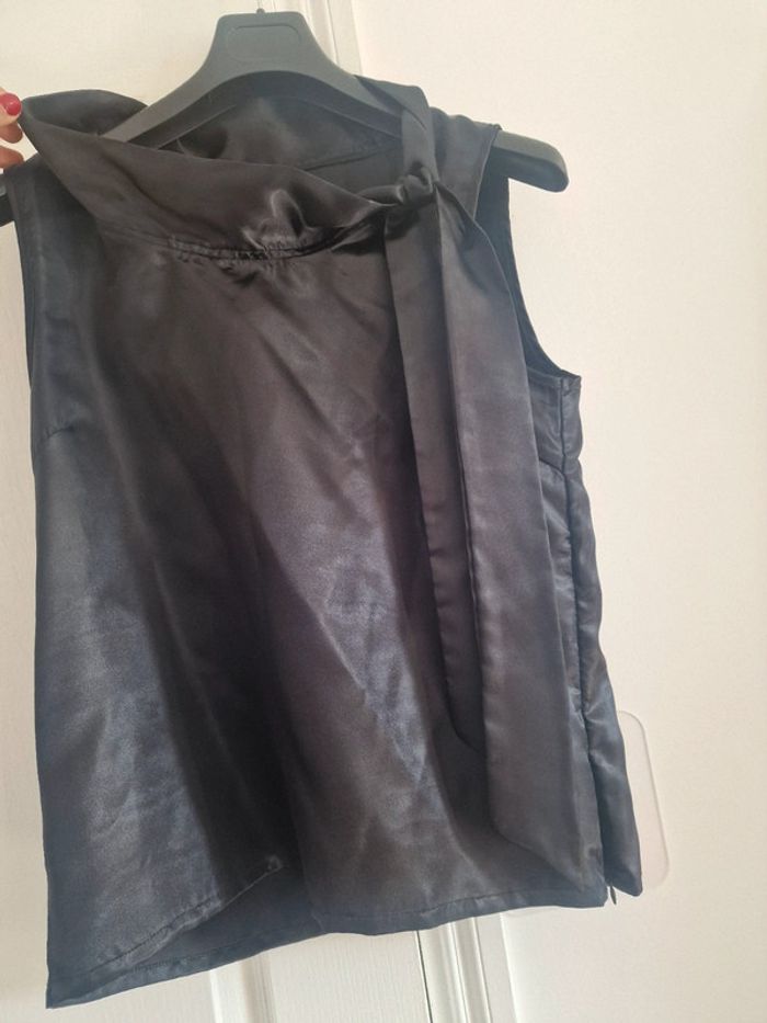 Haut debardeur satin noir col lavallière - photo numéro 2