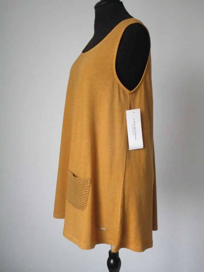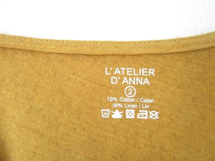 Débardeur long/tunique jaune moutarde de marque L'Atelier d'Anna Taille 2, correspond à du 38/40 (cf mesures) Forme fluide Poche dans le bas à gauche 70% coton/30% lin Largeur aisselle à aisselle : 49 cm Longueur : 75 cm NEUF avec étiquette #mamanbrade59femme38 #mamanbrade59femme40