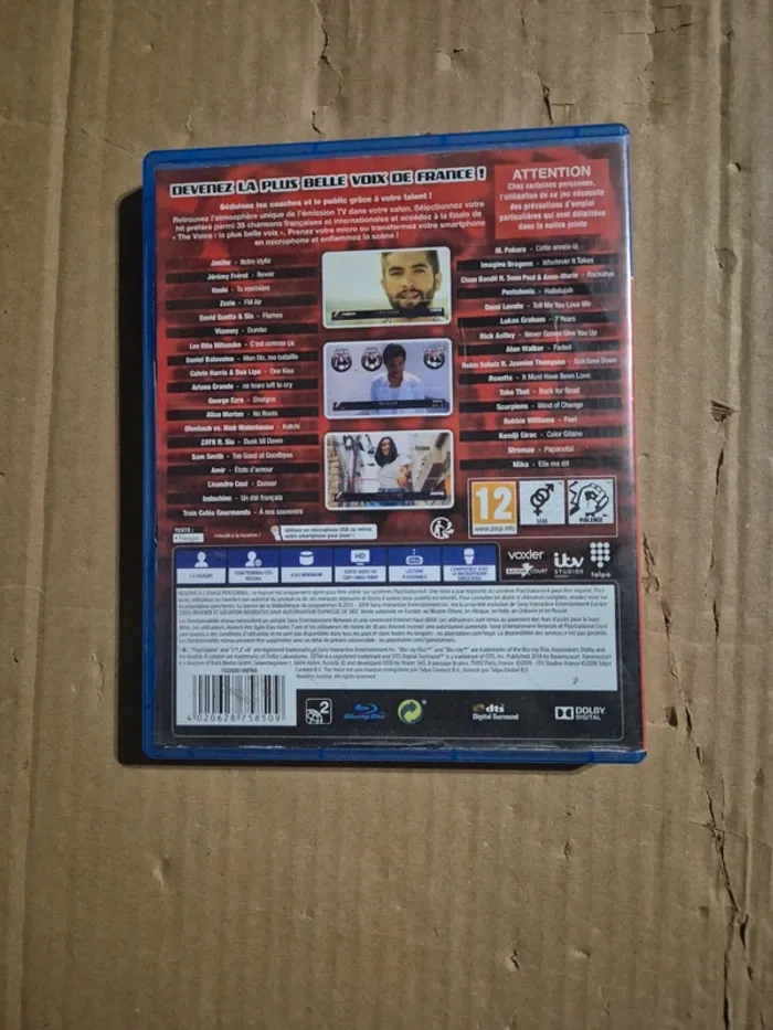 Jeu The Voice version 2019 pour PS4 en bon état. Version française. Le CD est en très bon état. La jaquette n'est pas l'originale mais une photocopie couleur réalisée sur papier épais et satiné. #jvtm59_PS4