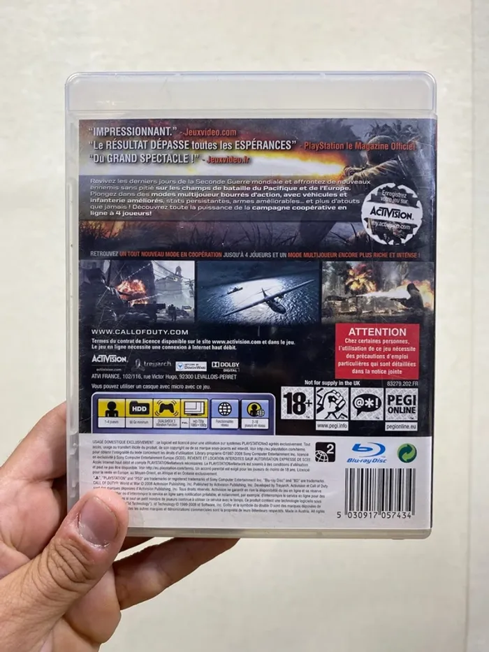 💥 Redécouvrez l’un des épisodes cultes de la saga Call of Duty, avec son ambiance brutale et réaliste de la Seconde Guerre mondiale. World at War vous plonge dans des batailles épiques en solo et en multijoueur, avec le fameux mode Zombies. 📀 Jeu en très bon état général : disque testé et fonctionnel. Boîtier avec quelques traces d’usage visibles (voir photos), livret inclus. ⚠️ Note : il s’agit d’une version d’occasion avec des traces d’usure sur le boîtier et la notice, le jeu fonctionne parfaitement. 📦 Expédition rapide sous 48h jours ouvrés ! ⸻ #callofduty #callofdutyworldatwar #callofdutyps3 #codwaw #jeuvideooccasion #ps3games #playstation3 #fps #worldatwar #codzombies #jeupascher #ps3collection #gamingcollection #retroshooters #codclassic #fpsaddict #gamerfr #zombiesmode #warshooters #codfrance #codfr #shootergame #callofdutycollection #ps3legend #fpsps3 #zombiecod #multiplayerfps #callofdutyzombies #zombiemode #codworldatwar #classicfps #gamerlife #ps3collector #gamingnostalgia #codstory #ps3community #fpsveteran #jeuvideofrance #codaddict #codps3 #shootemup #fpslegend #warfps #gamervintage #retrogamerfr #callofdutycollectionfr #codwawfr #playstationcollection #codseries #jeuvideomultijoueur #jeuvideo #jeuvideoretro