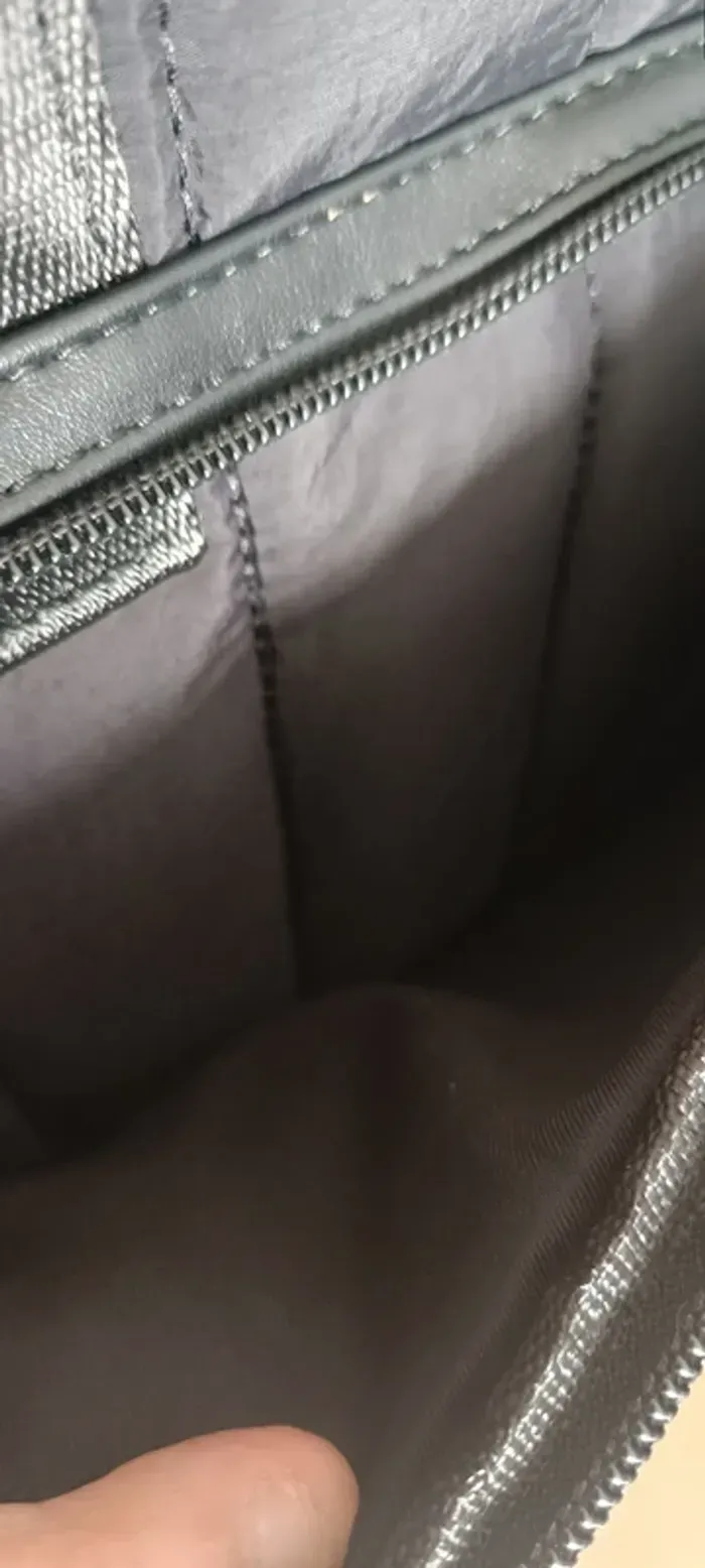Sac matelassé façon doudoune Tout doublé intérieur Très élégant et neuf Une grande poche devant à fermeture éclair 3 poches intérieures dont une avec fermeture éclair Grande contenance Largeur 40 Hauteur sans anses 28 Fond du sac 15
