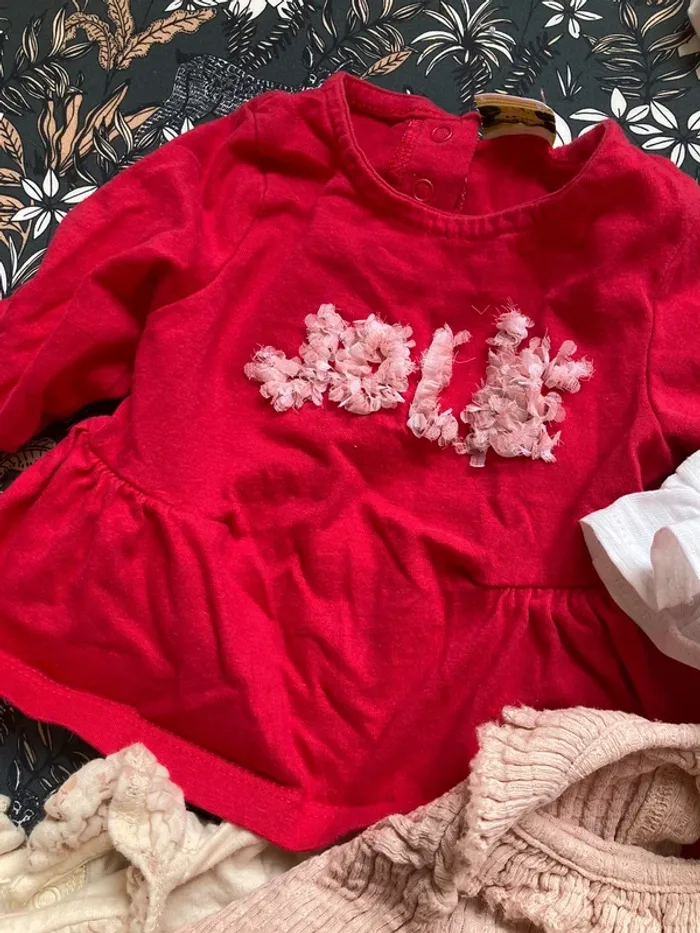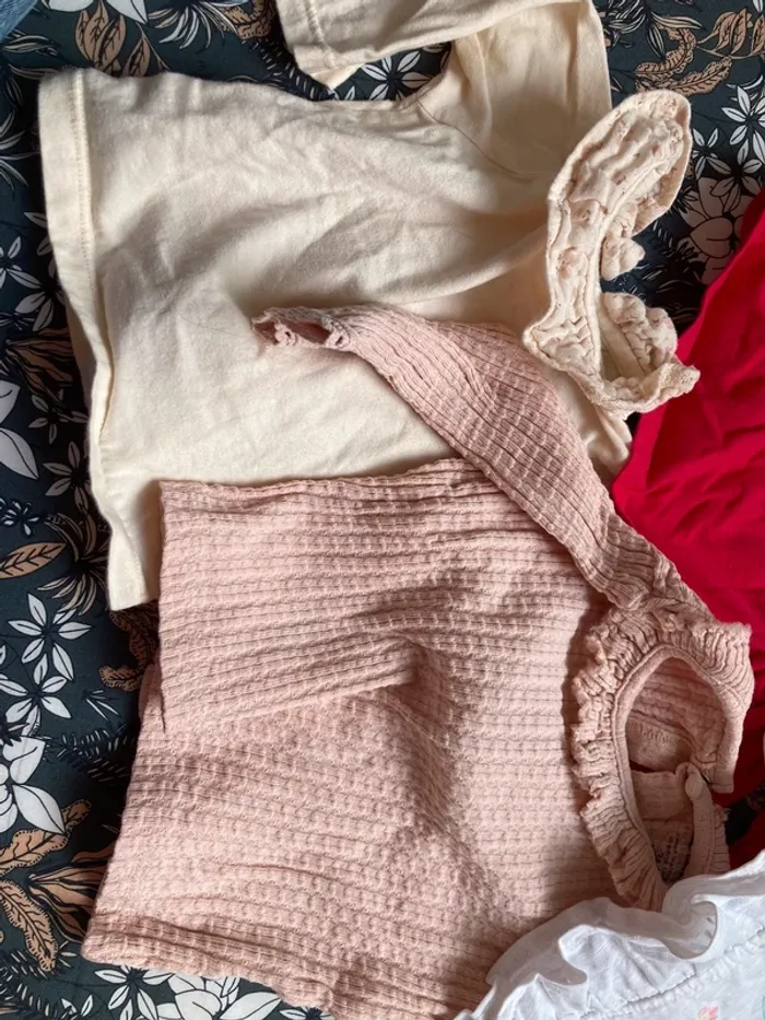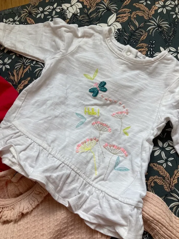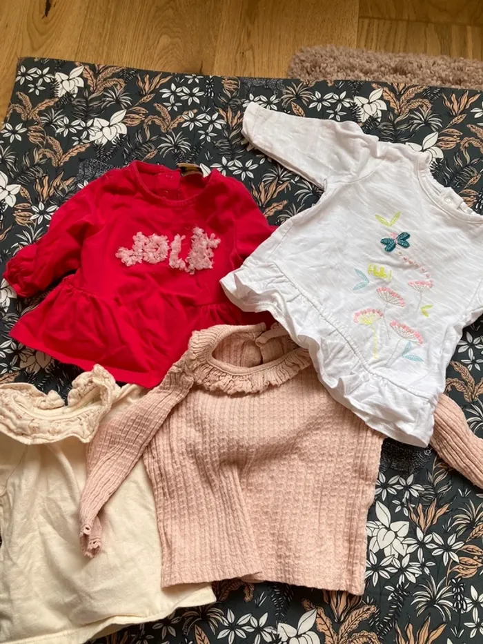 4 hauts manches longues Rose fuschia marque tapez l œil Blanc : orchestra Les deux autres kiabi Taille 3 mois