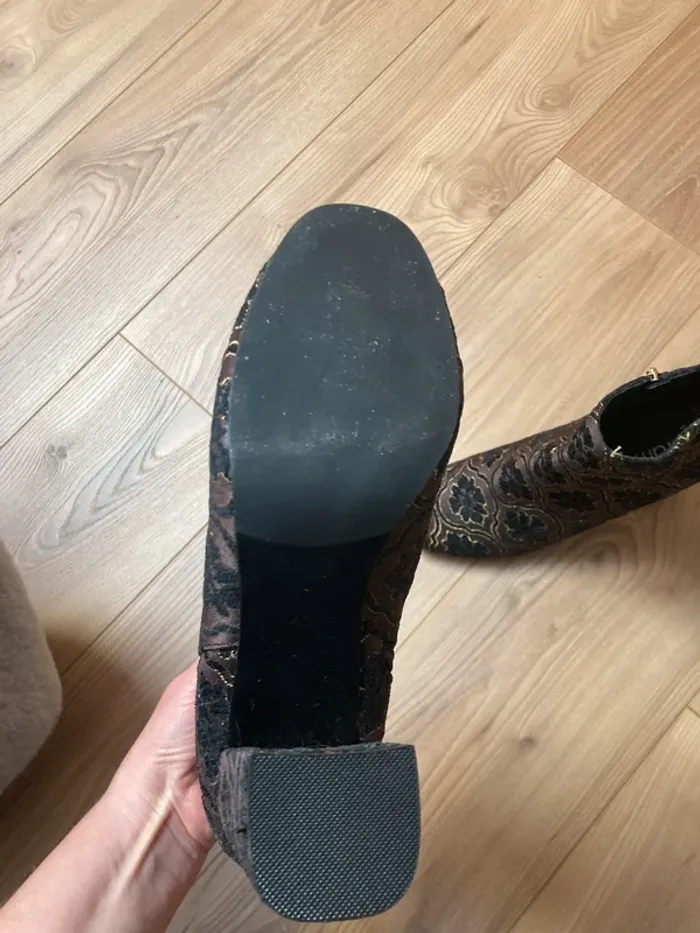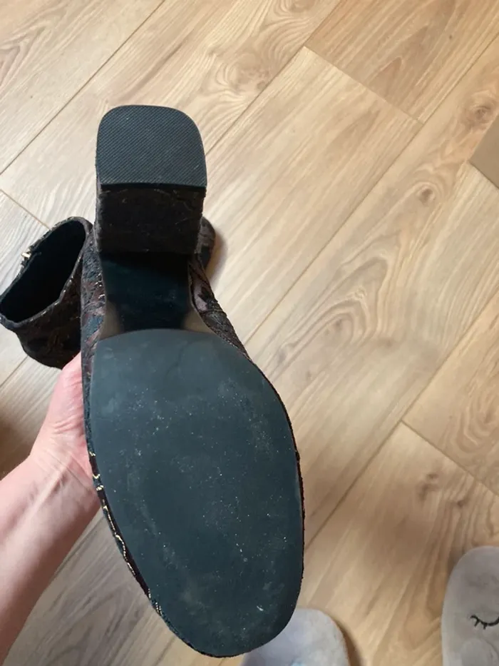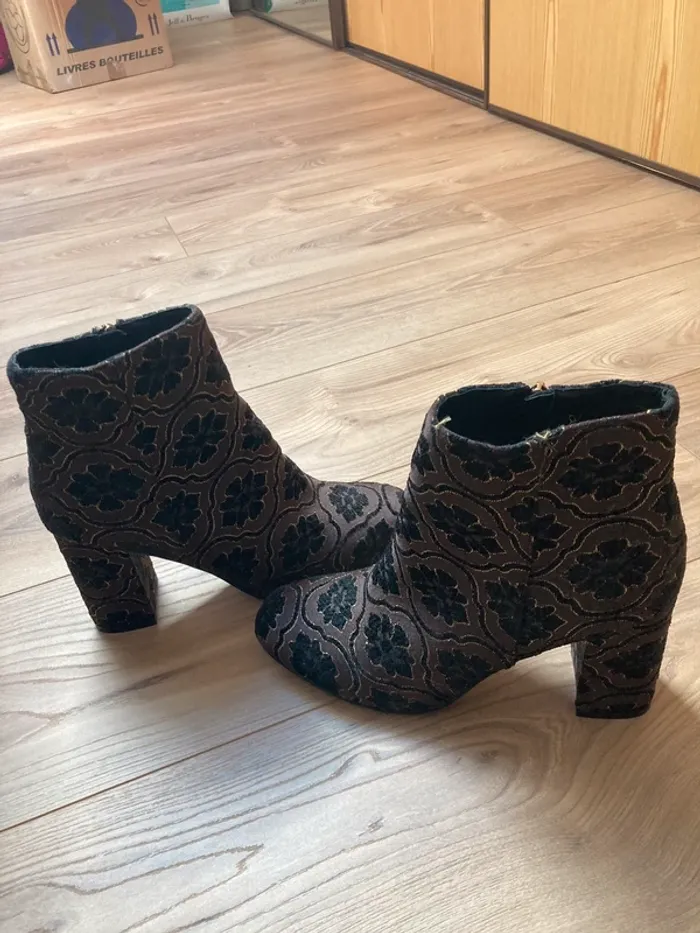 très chic jamais portées relief velours noir coloris marron très foncé et noir Talon max 9 cm