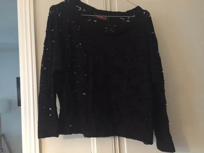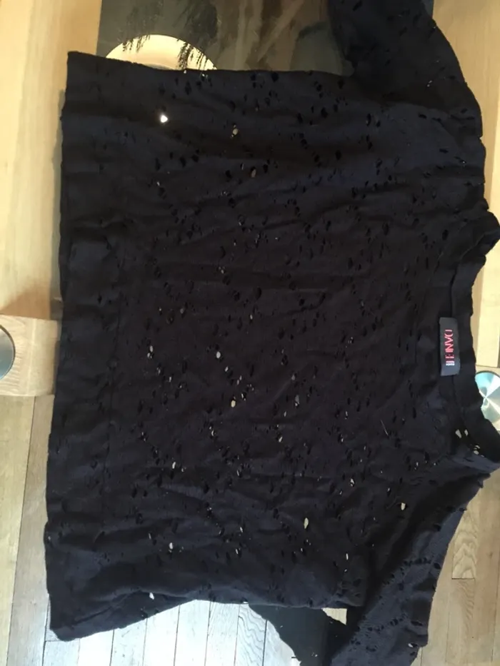 pull court noir avec trou taille 40/42 bon état