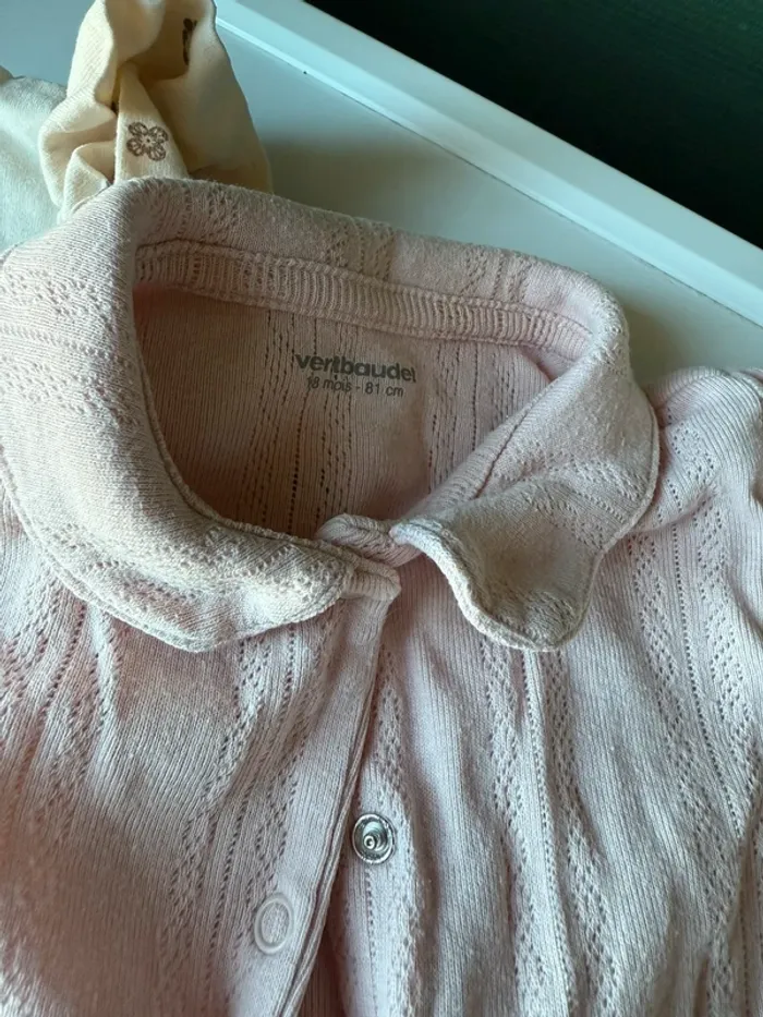 18 mois Quasiement pas porté car pas la bonne saison Un rose pale et un beige à fleurs noires et marron