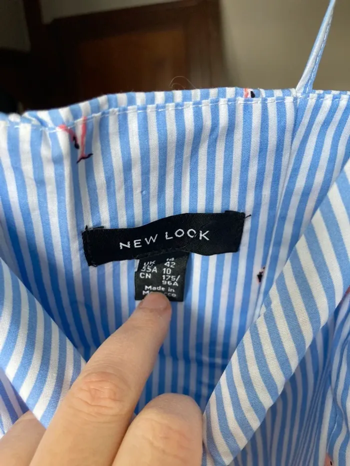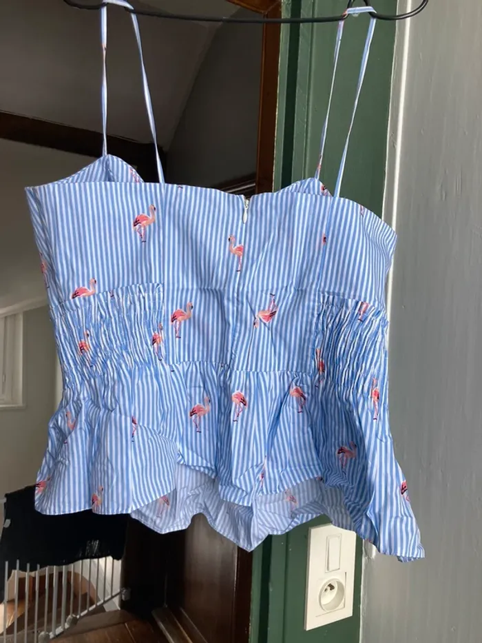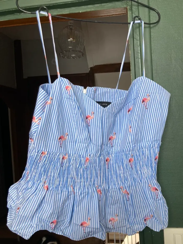 Top new look rayé bleu clair et flamants rose Joli avec un jean ou pantalon blanc Taille 42 Jamais porté