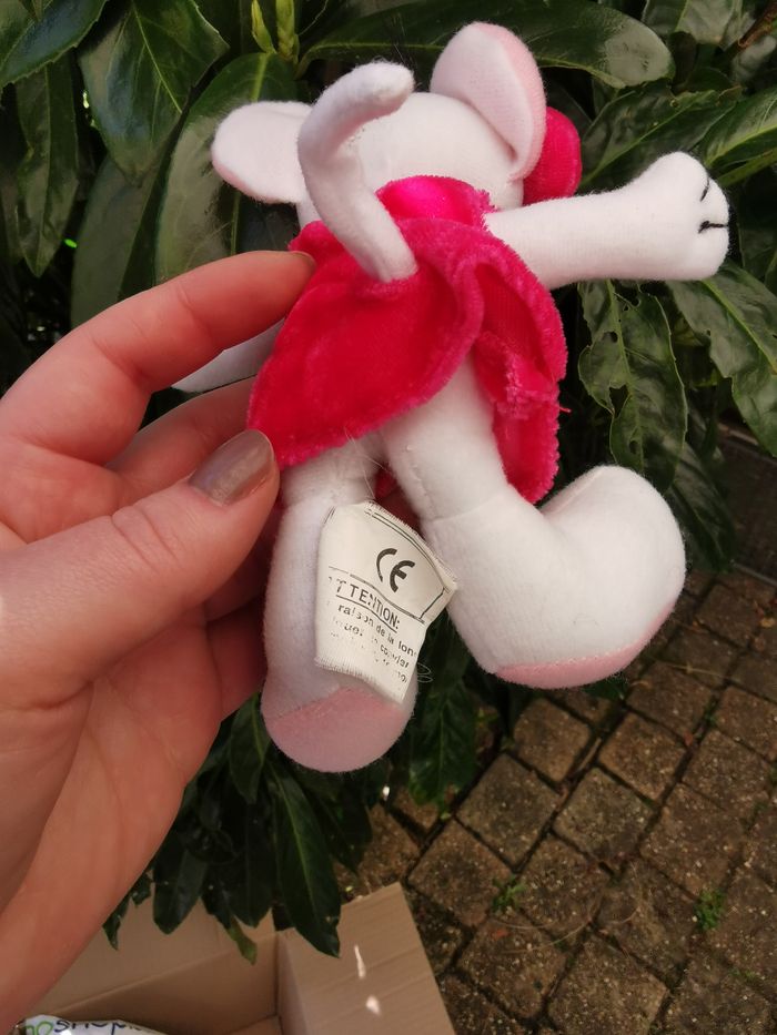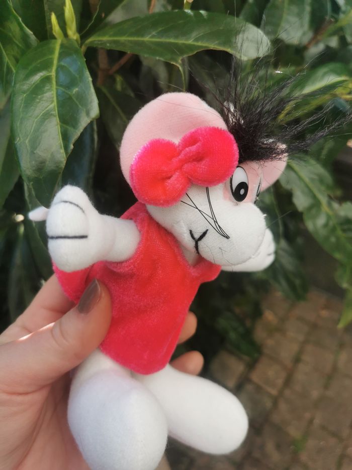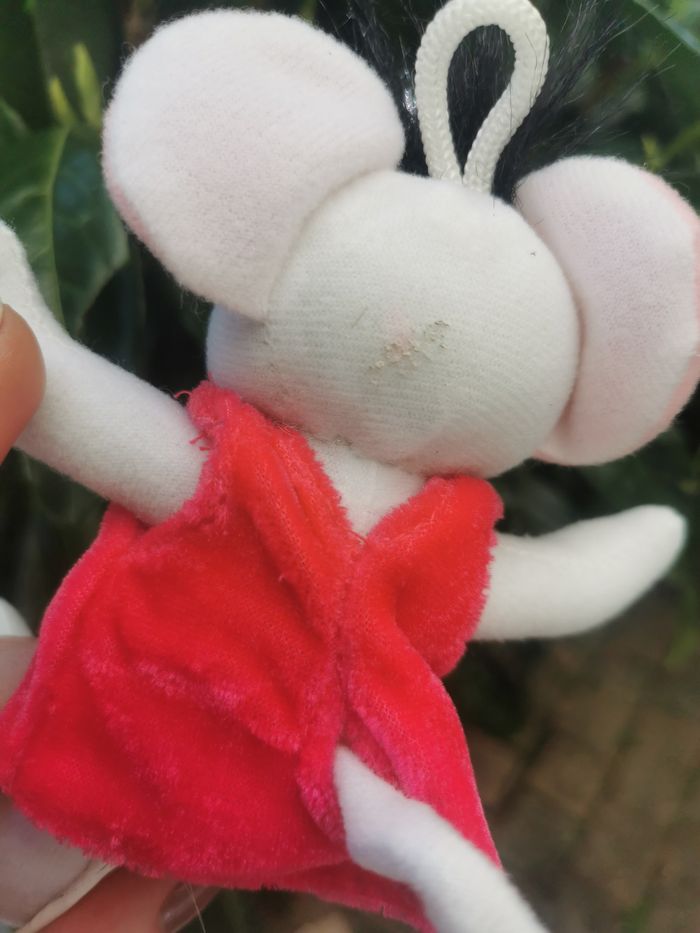 Peluche souris Diddle Van de Walle, en bon état général, décousue au niveau du nez et a une trace de colle à la nuque, avec une petite boucle pour la suspension, taille 14 cm, poids 43g.