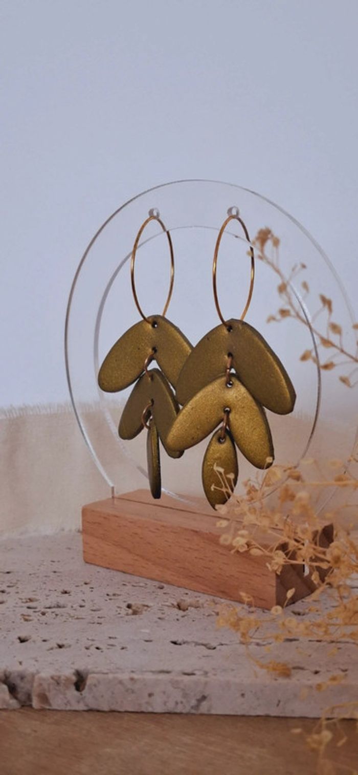 Brume or antique – Boucles d’oreilles pendantes – Création unique 💛 Simplicité flamboyante, élégance pétillante Laissez-vous séduire par le peps de Brume or antique, un modèle phare au caractère affirmé. Ces boucles d’oreilles en cascade évoquent les volutes d’un soleil flamboyant, où la chaleur rechauffe les coeurs. Une pièce forte et rayonnante, qui habille le creux du cou avec grâce et intensité. ✨ Modelée à la main, chaque goutte incarne le feu de l’argile mêlé à la délicatesse du geste. Le doré or antique, profond et mat, capte la lumière à chaque mouvement, tandis que la créole dorée en acier inoxydable ajoute une touche de chic éclatant. Une alliance parfaite entre puissance et raffinement, pour sublimer les moments précieux comme le quotidien. 💫 Une création pensée pour celles qui osent la lumière, les textures et la beauté simple d’un bijou vibrant. 🔹 Couleur : or antique, mat intense et métallisé 🔹 Style : bohème chic, petillant, affirmé 🔹 Matériaux : argile polymère, acier inoxydable doré (hypoallergénique) 🔹 Longueur : ~7 cm 🔹 Fait main en France – Modèle unique Retrouvez l’ensemble de la collection sur #AtelierPetalesdEclats 📦 Envoi rapide par Mondial Relay 💌 Pochon cadeau sur demande 🌞 Idéale pour un événement, une soirée ou pour illuminer vos journées #AtelierPetalesdEclats #FaitMain #CréationUnique #ArgilePolymère #TerracottaVibes #BrumeIncandescente #MariageBohème #BijouChaleureux #PolymereClay #CadeauCréatif #CréatriceFrançaise